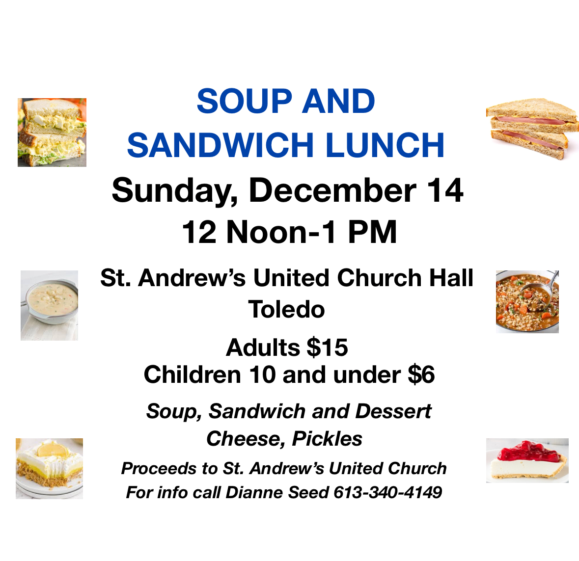 Homemde Soups, Sandwiches, Desserts, Coffee and Tea