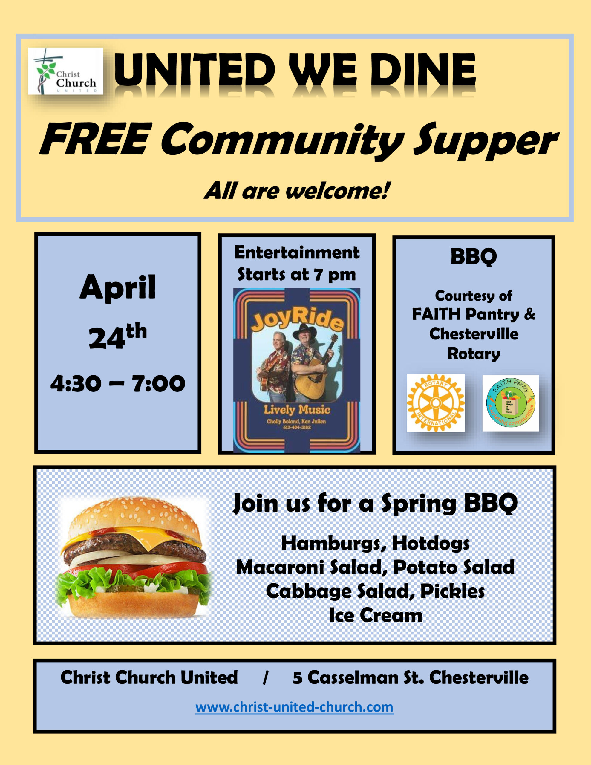 Join us for a spring BBQ of hamburgs, hotdogs, salads and ice cream. Stay after dinner […]