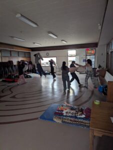 Saturday morning came early with Rev. Kim, Nikki Nel and Marg Eddy in the kitchen frying bacon and making waffles for the group. Once breakfast was done, Dana sat down with the group to talk about UCC history with Revs. Lorrie Lowes and Tamara Connors(Bells Corners UC) contributing Diaconal ministry content. Emily Gardiner (LLWL Bethel Rideau Ferry UC) provided morning worship and then hosted a discussion along with Kael Fowler (Bells Corners UC) about their experience at the Montreal Mission Internship program offered through the Diocesan College with the United Theological College. This initiative is open to youth over 18 and includes a work placement and living as an intentional faith community over 9 weeks each summer. Before lunch Rev. Kim Vidal(Bells Corners UC) hosted the Bible 101 workshop and in the afternoon, Rev. Lorrie Lowes facilitated the exploration of the New Creed, Song of Faith and UCC Social Justice. Rev. Tamara lead the group through a labyrinth workshop and the day wrapped with dinner and communion lead by Rev. Frank.